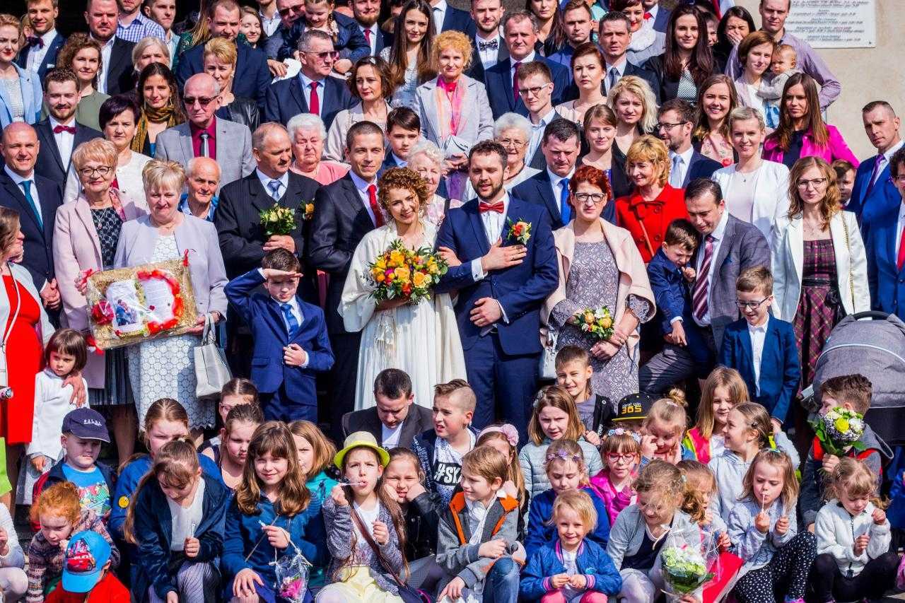 Najpierw pojawili się w Oratorium jako Wolontariusze z SWM-u. Potem stali się po prostu naszymi przyjaciółmi, których nie brakowało na boskich sobotach, półkoloniach, imprezach oratoryjnych. Ona- piękna i delikatna zarażała wszystkich uśmiechem i duchem misyjnym. On- mocno związany z poznańskim Lechem- pojawił się w stroju koziołka. Czas uciekał aż w końcu- nie w innym miejscu, nie w innym czasie, ale właśnie w naszym ORA, na oczach dzieci On poprosił ją o rękę. Potem wszystko już szybko poszło! 14 kwietnia wzięli ślub a my w ramach boskiej soboty zorganizowaliśmy BOSKIE WESELE. Byliśmy na Mszy, gdzie nie brakowało wzruszeń (jak to mówi nasz ministrant Zygi: „popłynęła mi łezka, ale nikomu nie pokazywałem). Po momencie duchowych przeżyć nie mogło zabraknąć solidnej dawki SALEZJAŃSKIEJ RADOŚCI! Młodzi wychodzili z kościoła wśród baniek, balonów, salezjańskich piosenek i okrzyków.