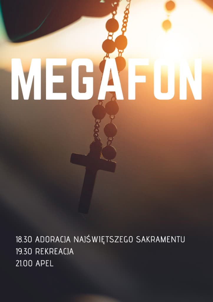 Najbliższe spotkanie rozpoczniemy adoracją najświętszego sakramentu. Po chwili dla Ducha, będzie czas relaksu i rekreacji! Na zakończenie krótko się pomodlimy i zaśpiewamy apel jasnogórski pod krzyżem misyjnym. MEGAFON jest właśnie dla Ciebie, sam przyjdź i się przekonaj! Zapraszamy! 🙂